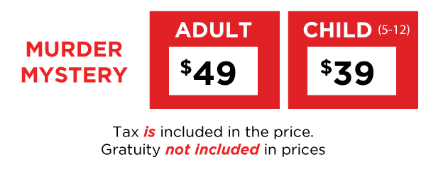 What would you do for $13,000,000 in cash? Lie? Cheat? Steal? Murder? Throughout the evening, many curious events will occur, including (gasp!) a murder, and we need you to figure out “whodunnit.” You can become part of the action or just sit back and enjoy the fun and delicious dinner, served to your table by the suspects, of course. Share in the laughter and the music, but remember, everyone has secrets…even you. One thing is certain, you’ll have the crime of your life!